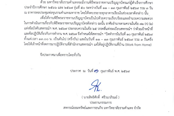 ประชาสัมพันธ์การทำธุระกรรม ประจำเดือน กุมภาพันธ์ 2569