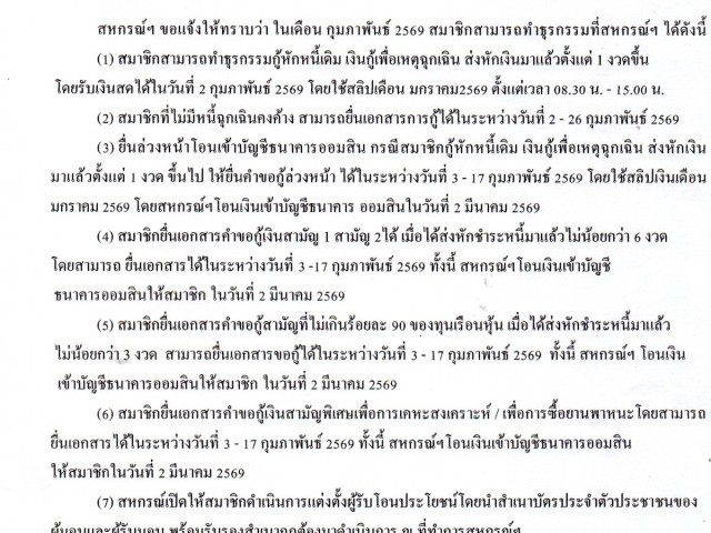 ประชาสัมพันธ์การทำธุระกรรม ประจำเดือน กุมภาพันธ์ 2569